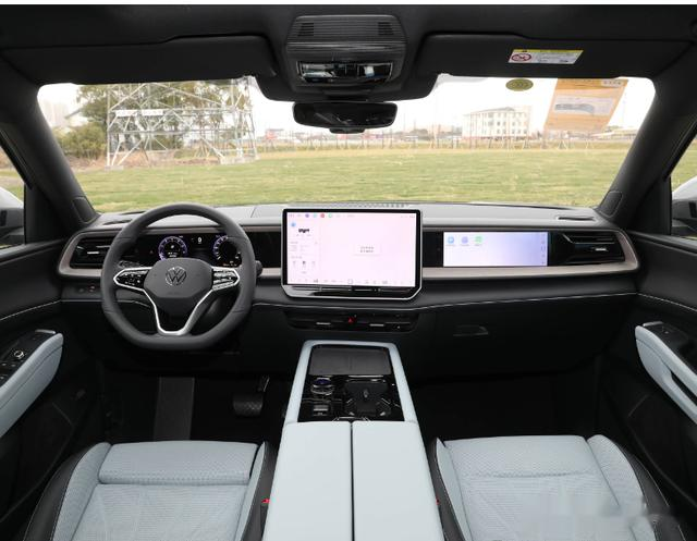内饰部分,主要延续了新途观L的设计风格,提供15英寸中控屏+11.6英寸中控屏,加入了高通骁龙8155芯片,并支持5G网络,苹果手机CARPLAY,华为手机互联,百度软件CARPLAY等车机互联,更加便利客户使用需求。